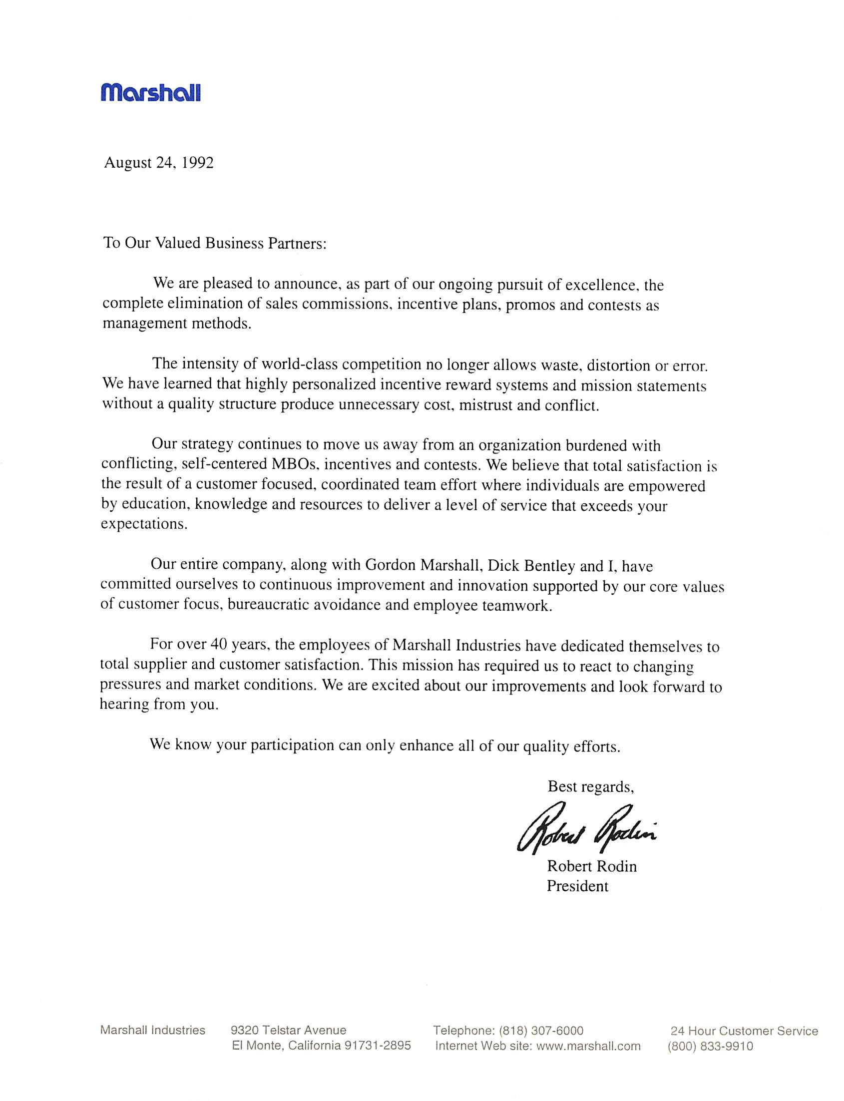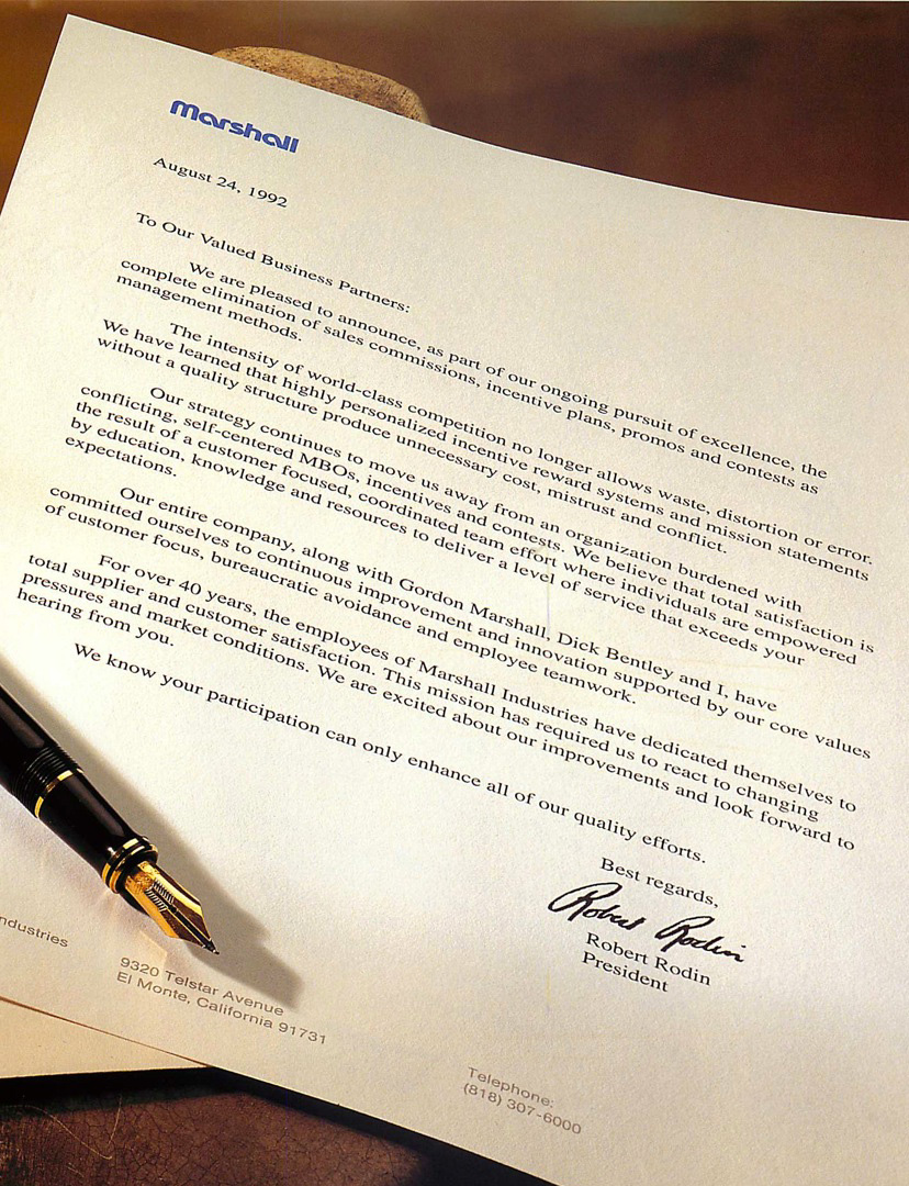 In 1990, Rob Rodin ended the incentive programs at Marshall Industries, an electronics distributor based in El Monte, California.